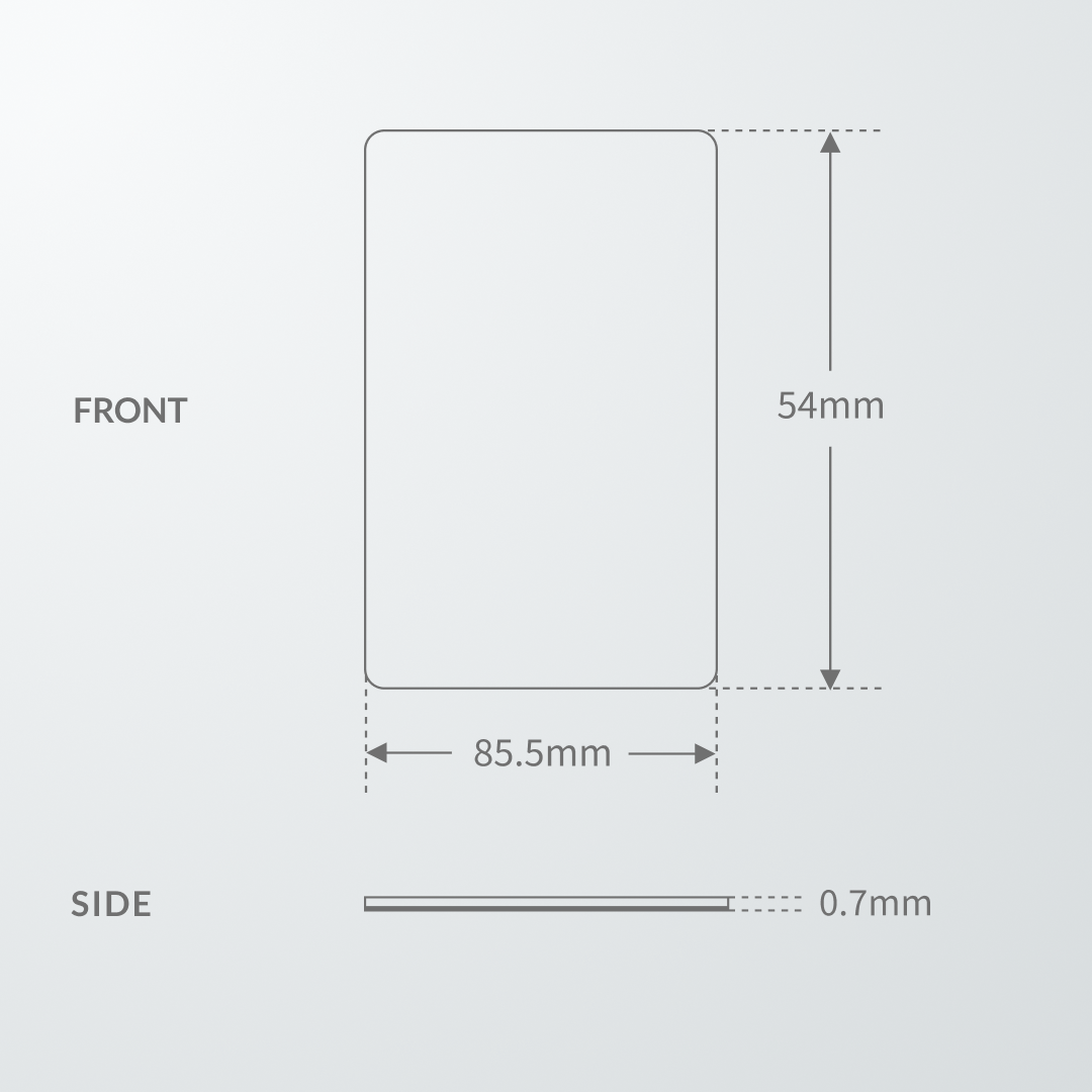 名刺ケースにおさまる、一般的なクレジットカードサイズのMEET 50枚パックです。表面にはタッチ資料のオフィシャルデザイン入りです。